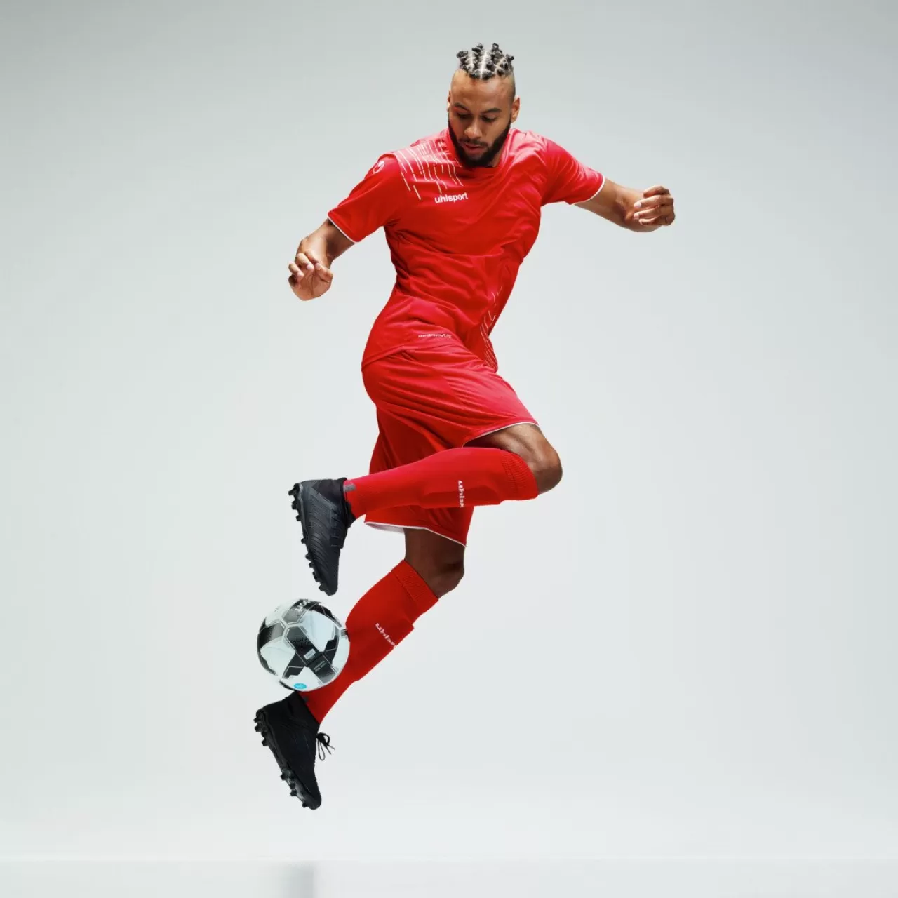 Set, Bestehend Aus Trikot Und Shorts Uhlsport Druck Auf Shirt Rundhalsausschnitt Score Druckdesign An Der Taille Und Einsatz Auf Der Ruckseite Uhlsport Logodrucke Auf Beiden Armeln Ruckseite Aus Speziellem Mesh-Material Shorts Ohne Innenslip Uhlsport Druck Auf Shorts Verstellbarer, Elastischer Taillenbund Mit Kordel Hergestellt Aus Recyceltem Polyester („For The Planet“)